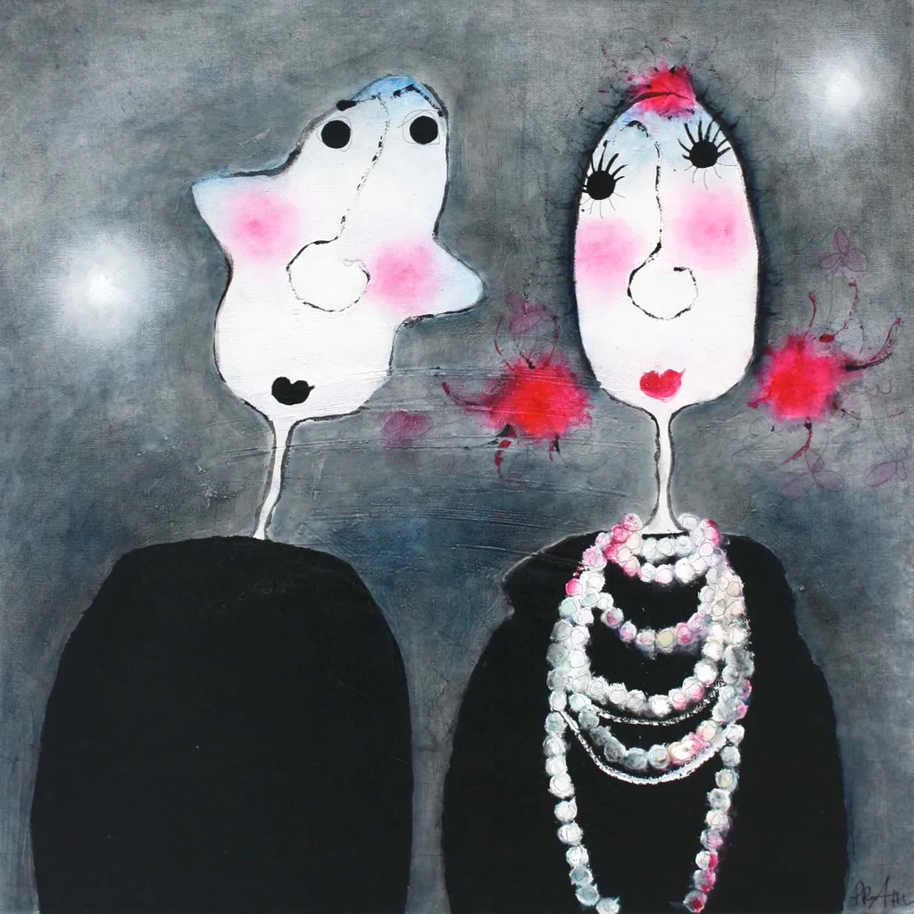 Künstler: Beate Prahl Titel: "Je später der Abend, desto schöner die Gäste!" Größe: 90 x 100 cm Technik: Mischtechnik auf Leinwand VERKAUFT!