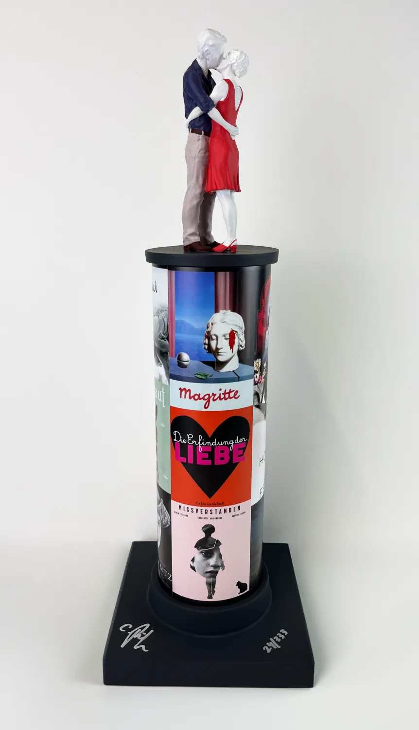 Name: "Säulenheilige Liebe (küssendes Paar)" von Christoph Pöggeler Produktbeschreibung: Höhe: 43 cm Breite: 15 cm Limitierte Auflage: 333 Stück Merkmale: Handsigniert und nummeriertDiese limitierte Skulptur verkörpert die subtile Eleganz und emotionale Tiefe, die für Pöggelers Kunst charakteristisch sind.