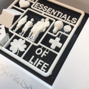 Das 3-D Objekt ist mit Passepartout in einer weißen Holzleiste mit Glas gerahmt.
