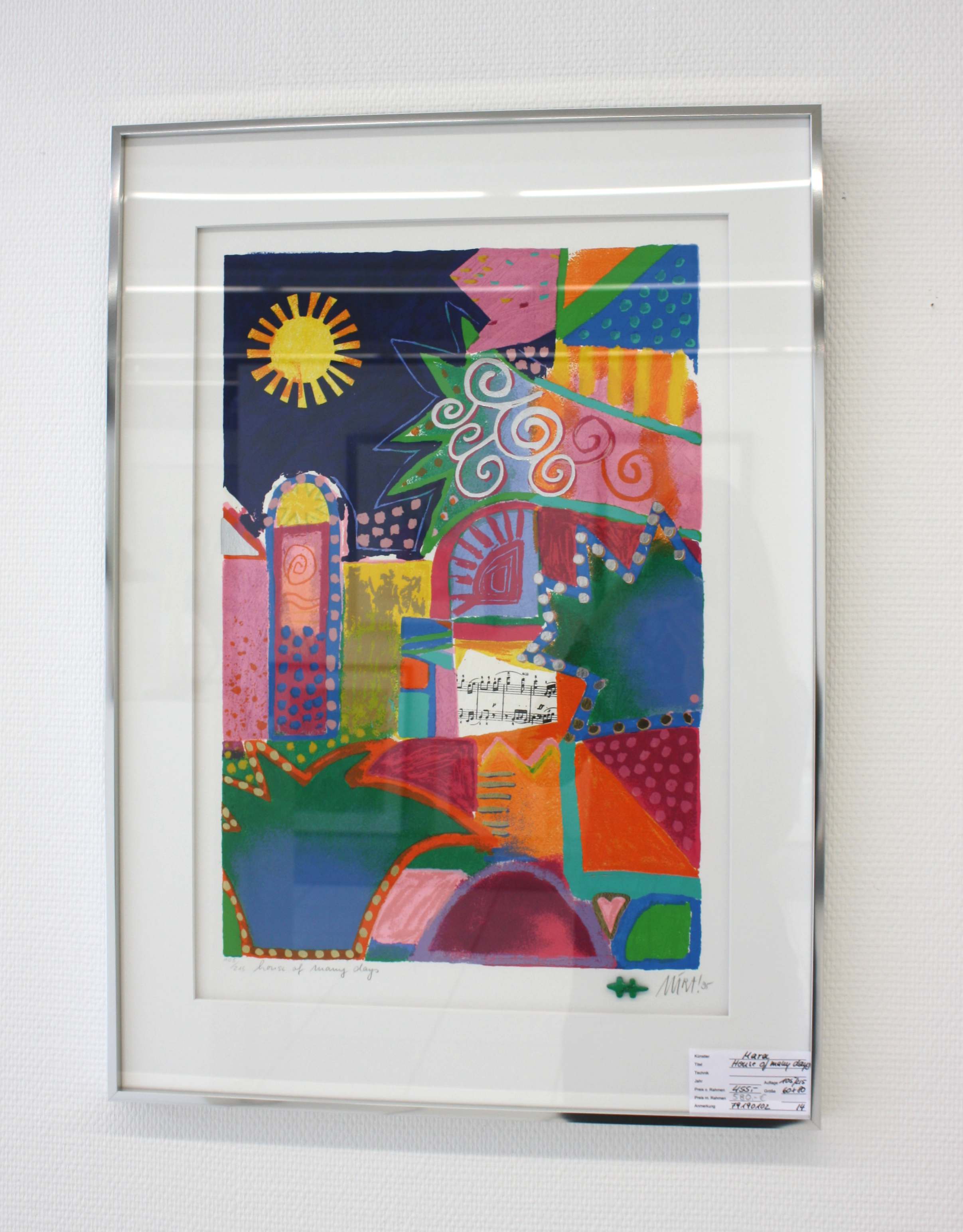 Die Grafik ist mit säurefreiem Passepartout und einem Aluminium Rahmen in silber-glanz gerahmt s. Foto 3.