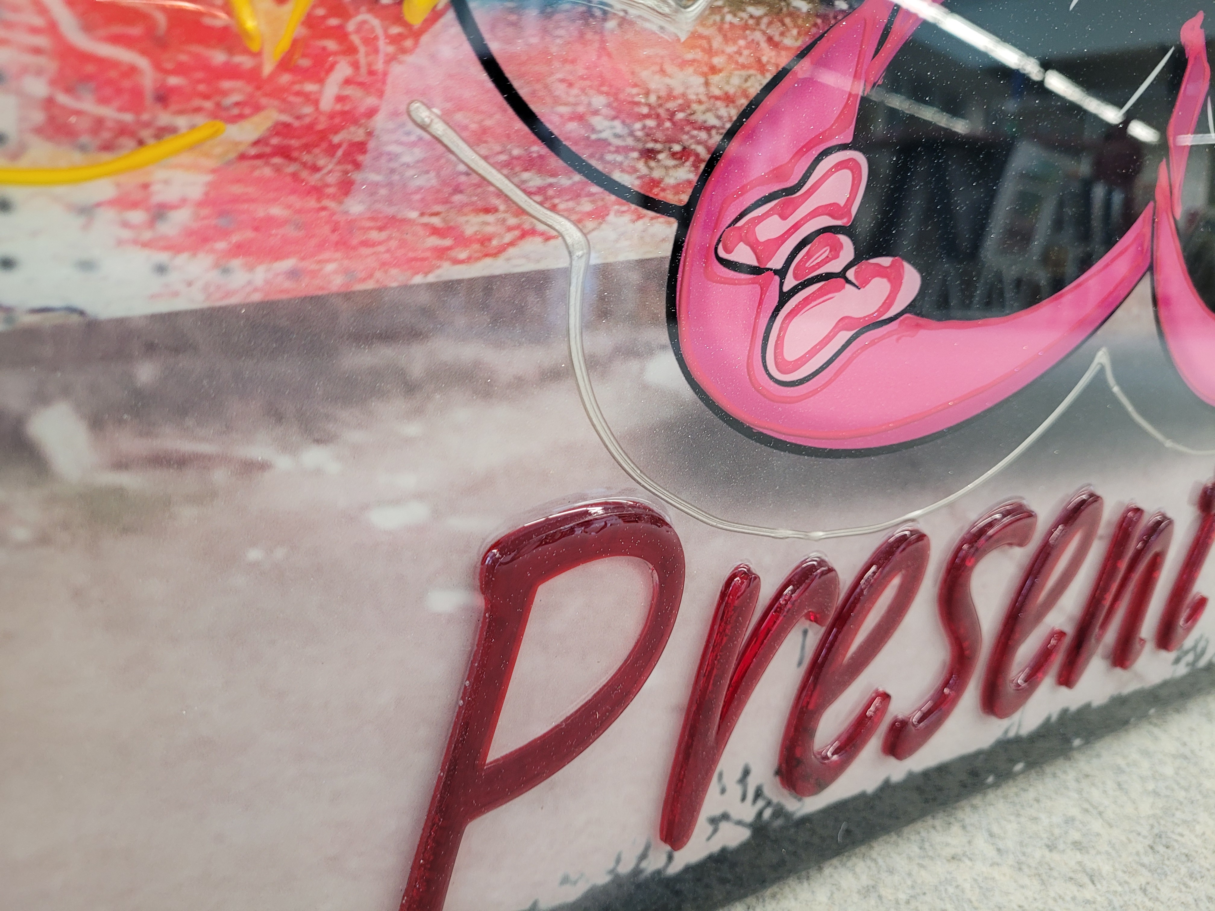 - Technik: Mixed Media mit Epoxy Oberfläche, Glitzer + 3-D Elementen