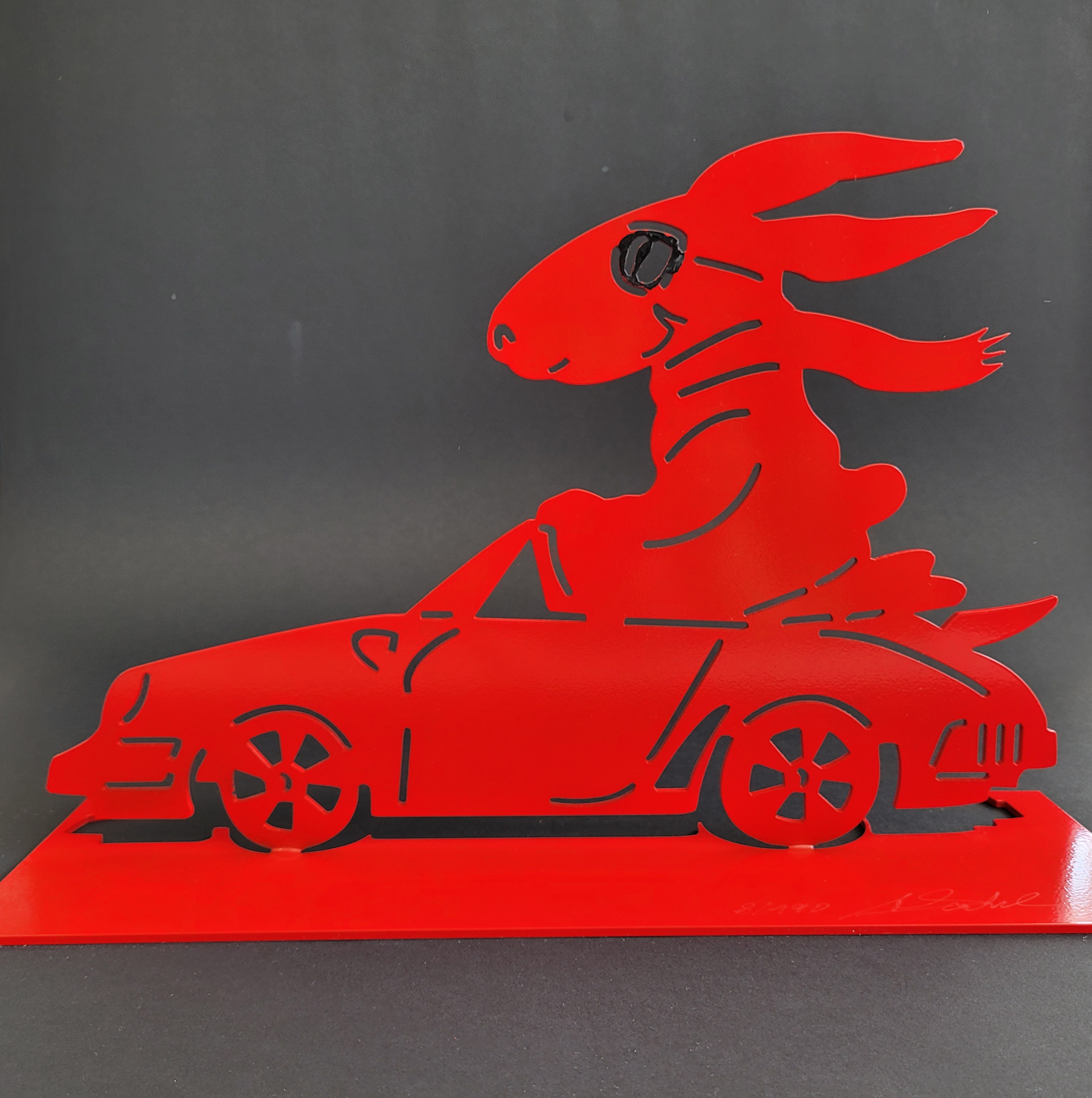 Produktinformationen "Porsche (rot) Hase Skulptur von Alfred Gockel"