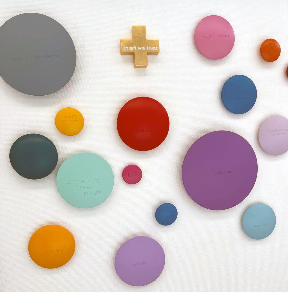 Jan M. Petersens Aluminium Linsen stellen eine ausgefeilte Mischung aus Handwerks- und Wortkunst dar. Jedes Objekt ist ein Unikat.